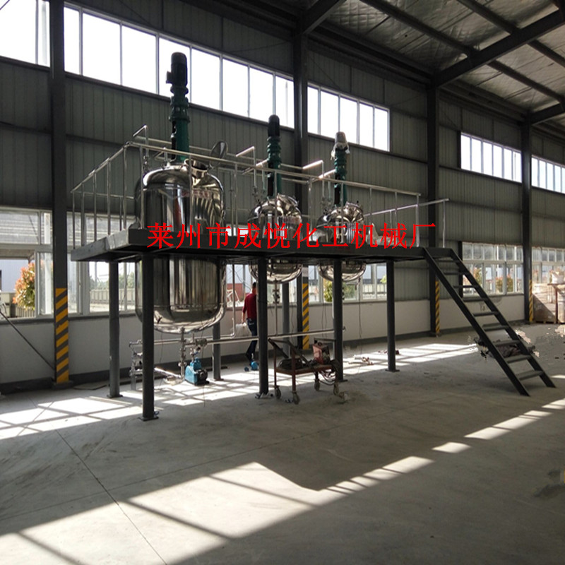 产品名称: • 高剪切涂料成套设备 • 产品介绍: • QZD-A型涂料成套设备 改变传统的高速分散、砂磨工艺,采用高速旋转的转子与精密的定子工作腔配合,依靠较高的相对速度,生产强劲的液力剪切、离心挤压、高速切割,而形成高频机械效应,使物料充分分散乳化,从而使物料细化。涂料生产工艺上采用液体计量器计量,高剪切乳化分散,真空吸料,真空消泡,半自动灌装整套工艺流程,从投料到出成品一道工序。 QZD-B型涂料成套设备 除A型功能外还增加一台立式乳化机使物料细化更充分,增加一个调漆罐使产量大大提高。 QZD-C型涂料成套设备 主要特点:除具有A、B型功能外还具有双罐调色功能,适合大规模生产。 动态设备与众不同之处: 1、避免转子之间的磨损,选用特殊的材质和独特的热处理工艺,保证其耐磨性高于普通不锈钢材质的5倍以上,表面硬度提高一倍以上。 2、特殊设计的组合式乳化头结构,确保了被加工物料在高、中、低各种粘度状态下无死角运行。 3、釜内动态混合和釜外静态混合的完美结合,保证颜料和高粘度树脂的高度分散和充分混合。 4、釜内高剪切和釜外高剪切粉碎功能的同时作用,保证了物料的进一步细化,并大大缩短操作时间。 5、静态混合冷却效率高于夹套式冷却5-8倍,保证生产过程连续进行。 6、特殊的抽真空设计,保证物料在真空状态下生产,避免了生产过程中气泡的产生,同时可实现真空自动吸料过程,减轻劳动强度。 7、完整的配置,无须用户另配其他辅助设备,接通电源可生产。 8、一机多用,除可生产涂料、油墨外,还可生产日用化学品,如:洗发液、化妆品等。订购:乳胶漆一体机